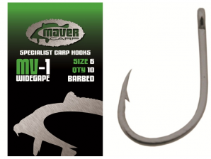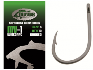 Udica Maver Carp MV1, je klasična udica širokog grla i kratkog vrata što omogućava izuzetnu snagu. Izrađena je od najfinijeg stainless čelika. Idelana za upotrebu na terenima sa prepreka, preporučuje se za mamčenje klasičnim, pop-ap boilijima i zrnastim mamcima. Dostupna u celičinama 2-8. Pakovanje od 10 komada.