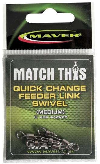 Maver Qick Change Feeder link, je kopča koja se koristi za pravljenje sistema-montaža u fider ribolovu i služi za brzo postavljanje/skidanje predveza ili hranilice.