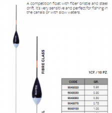 Ovaj plovak blago izduženog tela, opremljen je stabilizatorom od čelične žice i karbonskom antenom. Izuzetno ke osetljiv i namenjen je takmičarskom ribolovu na stajaćim i sporotekućim vodama.